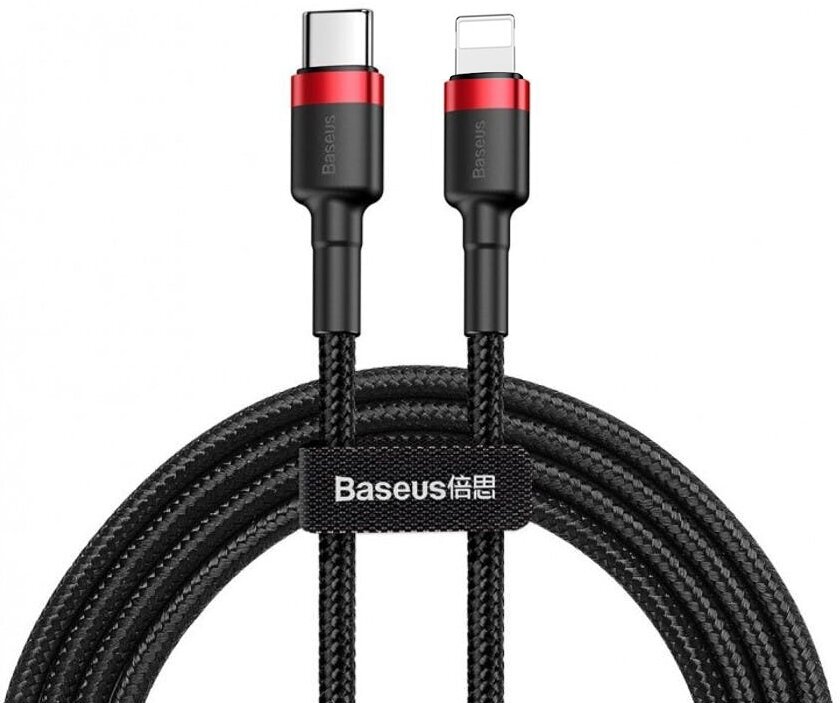 Кабель для быстрой зарядки Baseus Cafule, Type-C - Lightning, PD20W, 1 m, Черный/Красный, CATLKLF-91