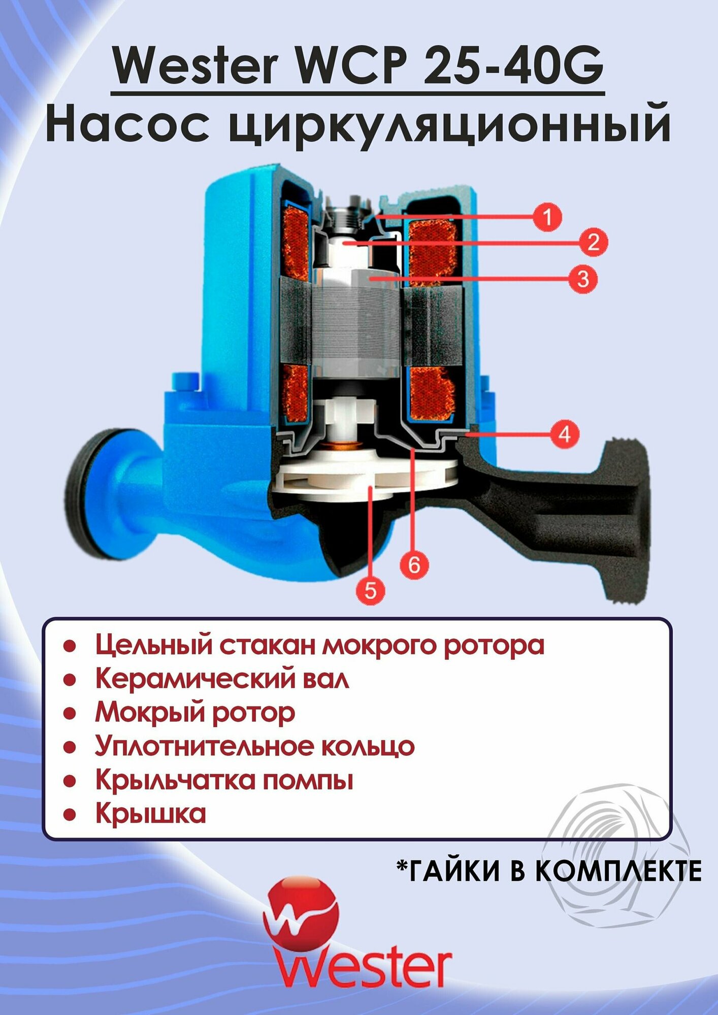 Циркуляционный насос WCP 25-80G 180 мм 220В с гайками, Wester 0-18-0050