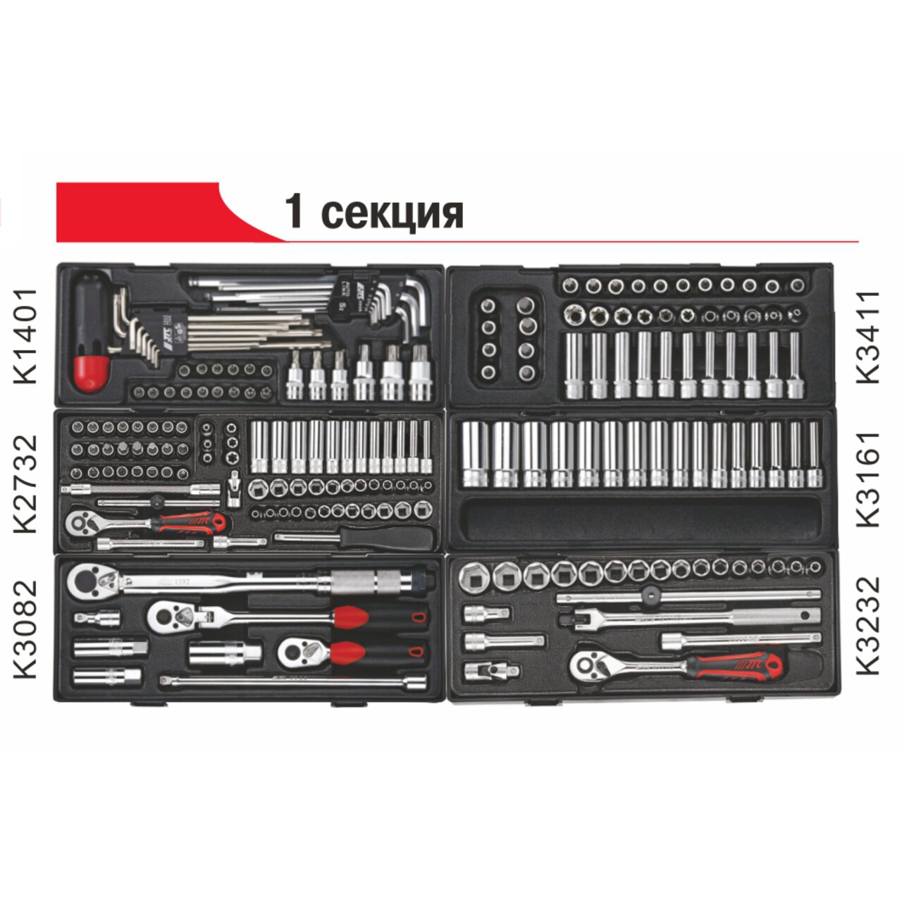 Тележка инструментальная JTC-5641 (8 секций) в комплекте с набором инструментов (496 предметов) JTC /1