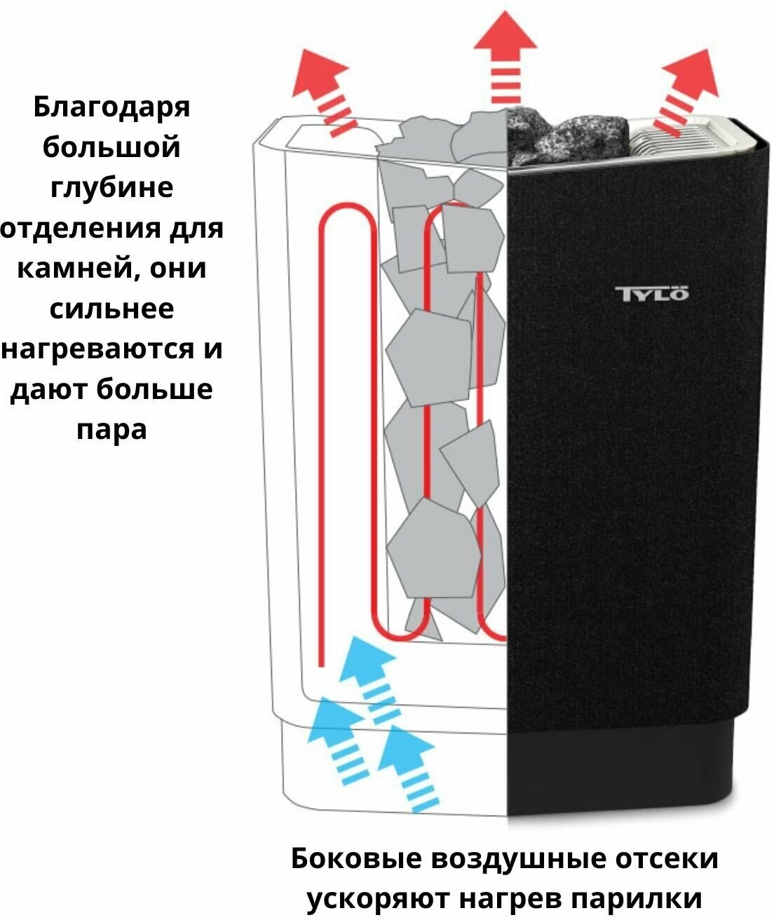 Электрическая печь для бани TYLO SENSE COMBI ELITE 8 черного цвета с пультом Elite и с парогенератором