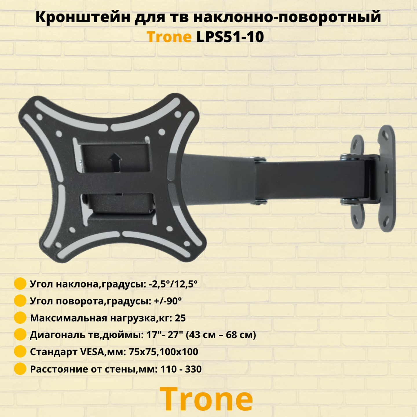 Кронштейн для телевизора на стену наклонно-поворотный с диагональю 17"-27" Trone LPS 51-10,черный