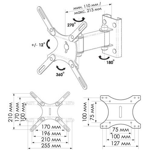 Кронштейн Trone ЖК 751 , для ТВ, наклонно-пов, 15"-26", до 25 кг, 110-213 мм, чёрный