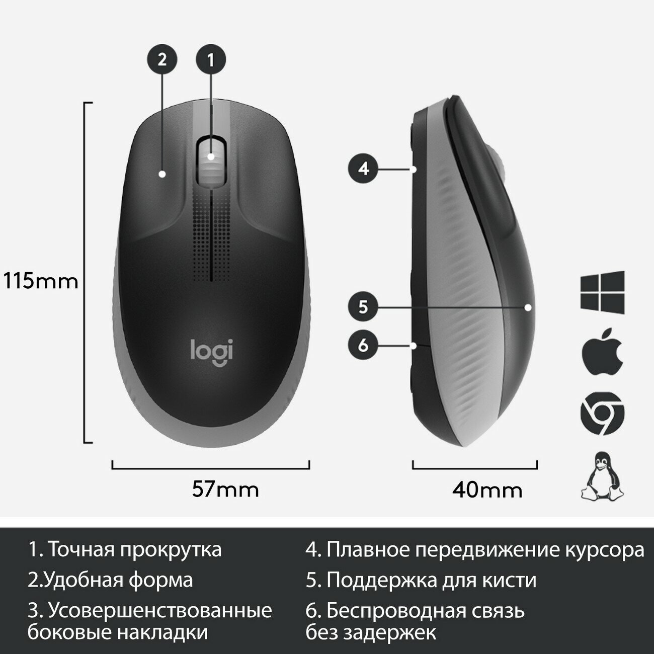 СохранитьМышь компьютерная Logitech WRL M190 GREY 910-005924, 1 шт. интересное: