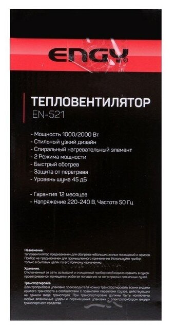 Тепловентилятор Engy EN-521 черн., 2кВт, спирал. нагрев., 2режима, ручка 8020