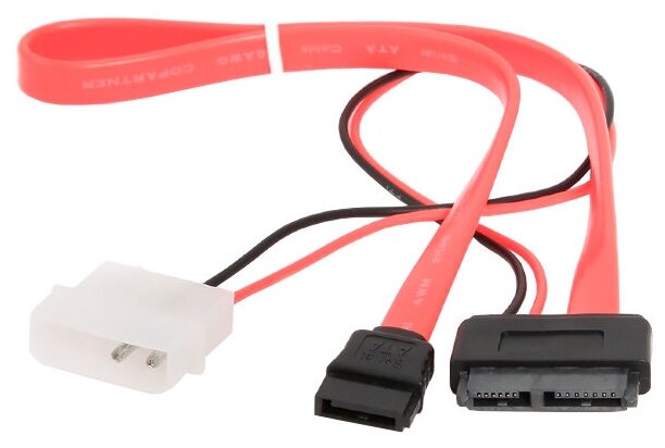 Кабель Cablexpert SATA 7 pin - SATA Slimline/Molex 2 pin, 0.5 м, красный
