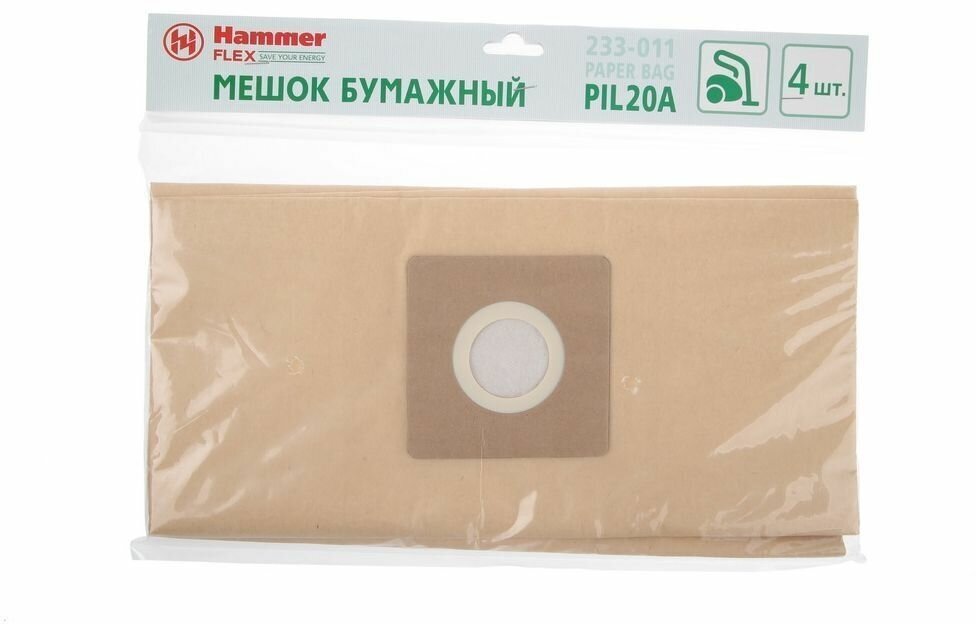 Мешок для пылесосов Hammer Flex 233-011, бумажный, для пылесоса PIL20A, 4 шт