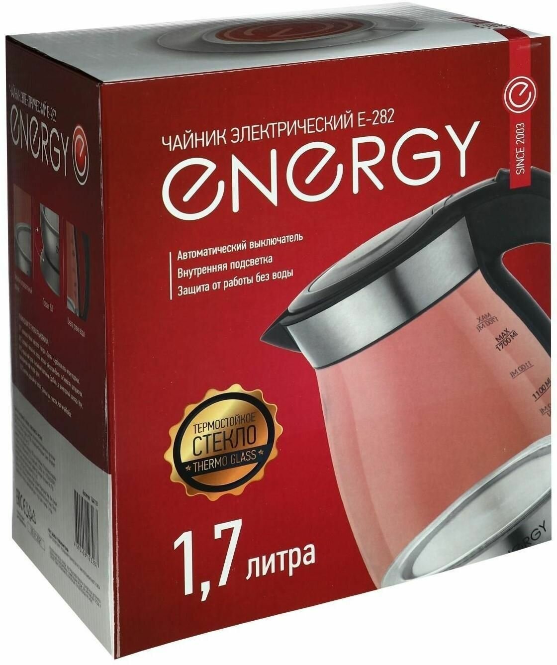 Чайник электрический ENERGY E-282, стекло, 1.7 л, 2200 Вт, серебристый Energy 5137439