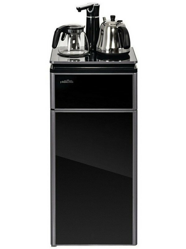 Кулер для воды HIBERG F81 FGB напольный, нижняя загрузка, электрочайник, черное стекло