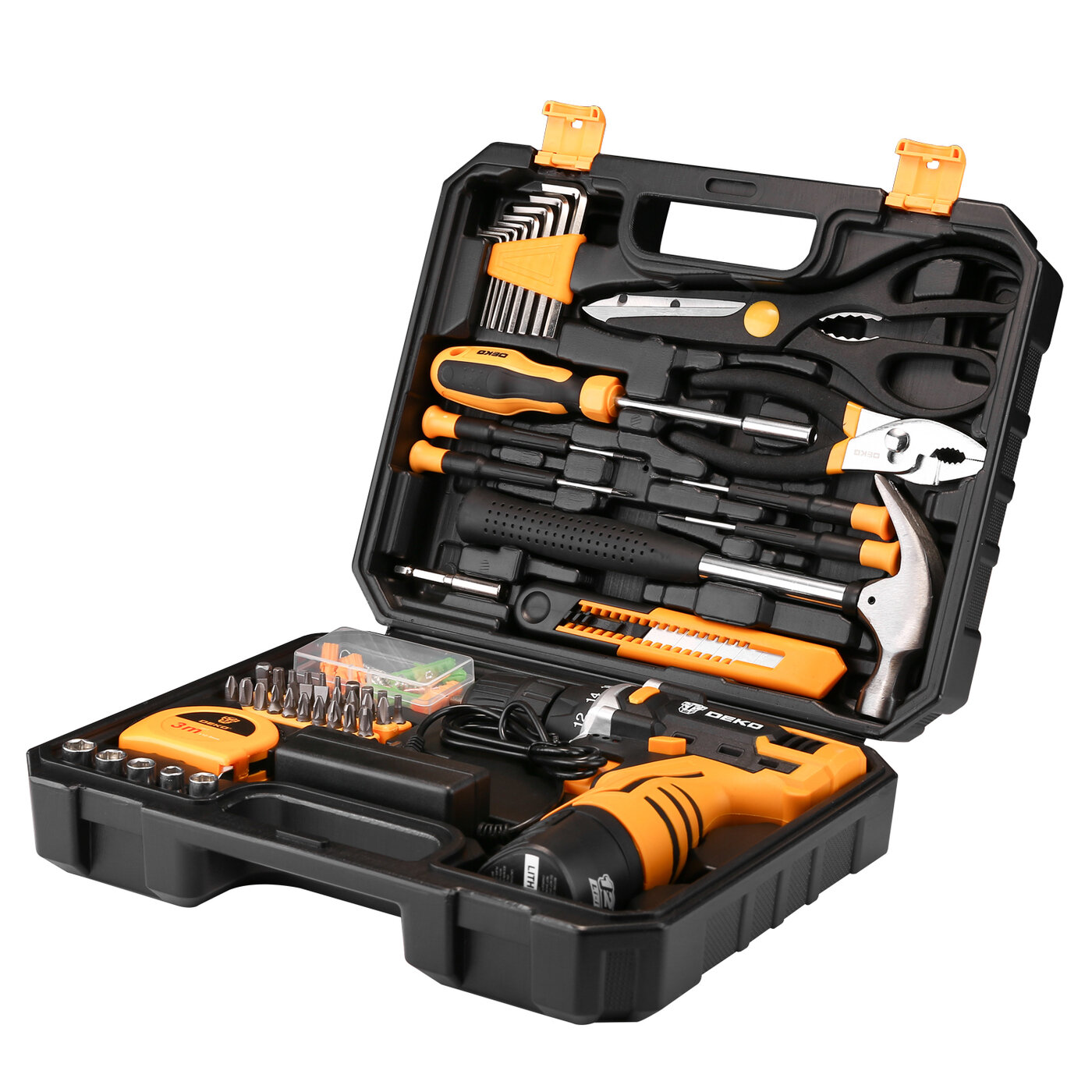 Аккумуляторная дрель DEKO DKCD12FU-Li в кейсе + набор инструментов для дома 104 шт, 12В, 1х2.0 Ач, з/у 063-4112
