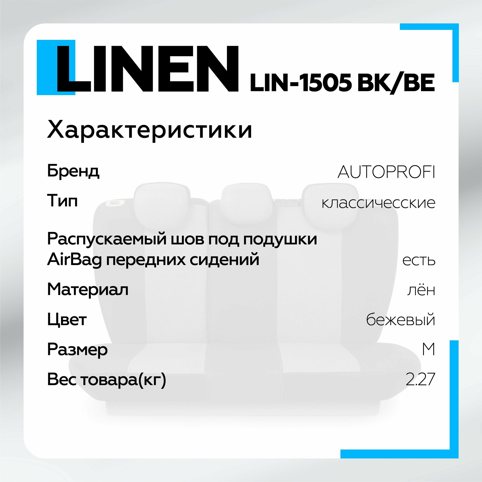 Чехлы AUTOPROFI LINEN материал лён крупного плетения LIN-1505 BK/L.GY