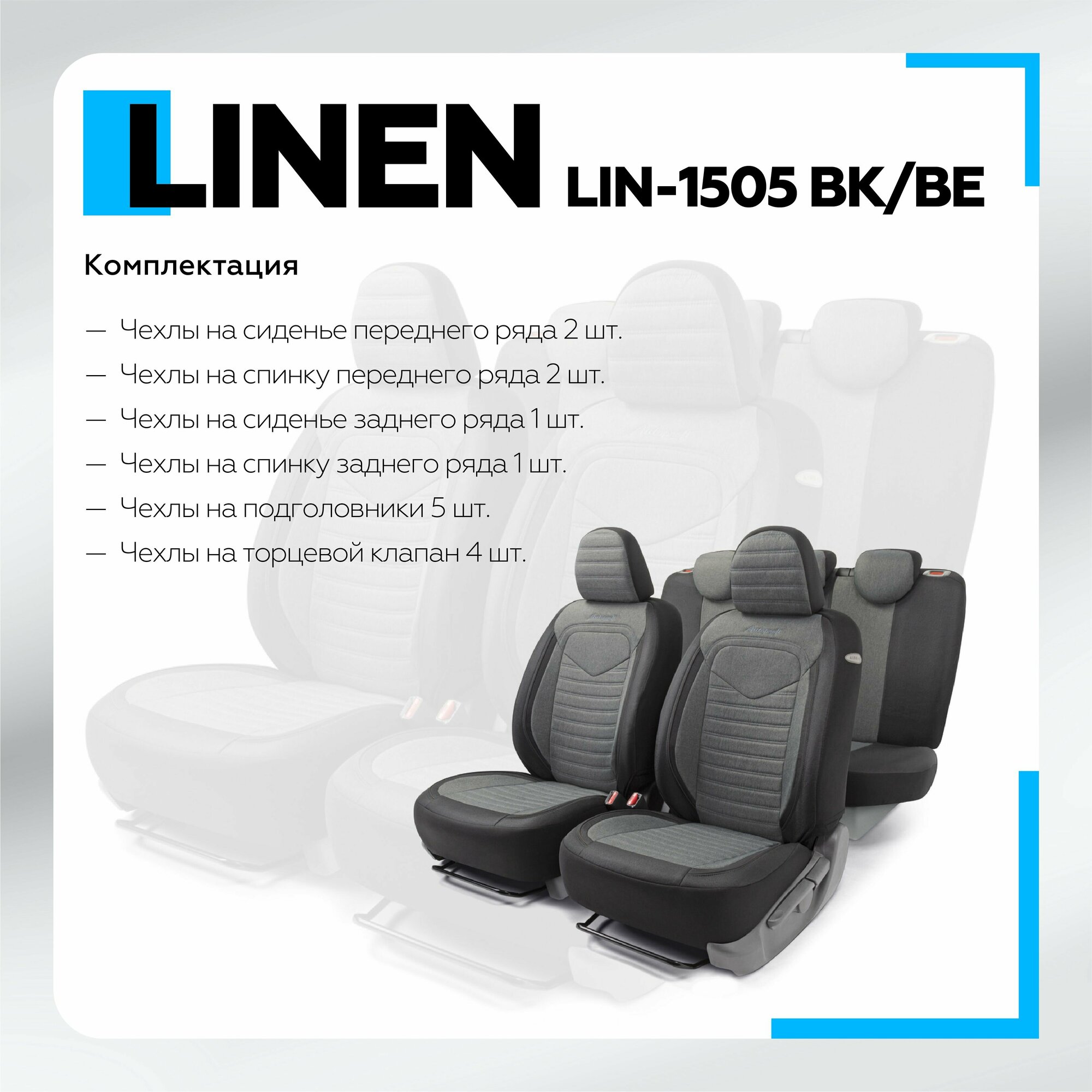 Комплект чехлов на сиденья LINEN, материал лён LIN-1505 BK/L.GY
