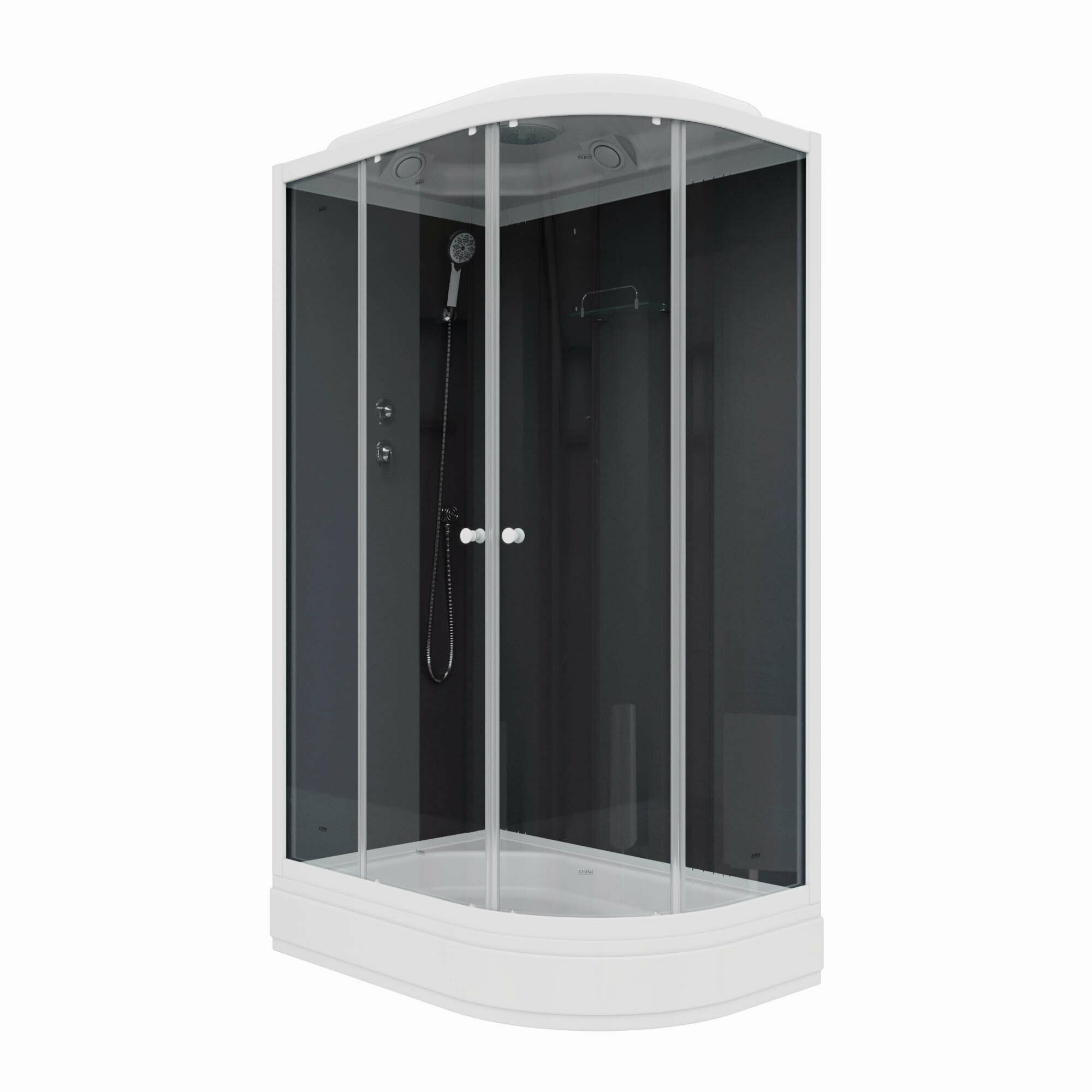 СохранитьДушевая кабина Parly CM121 L с полкой средний поддон 120*80 см белый/черный тонированное интересное: