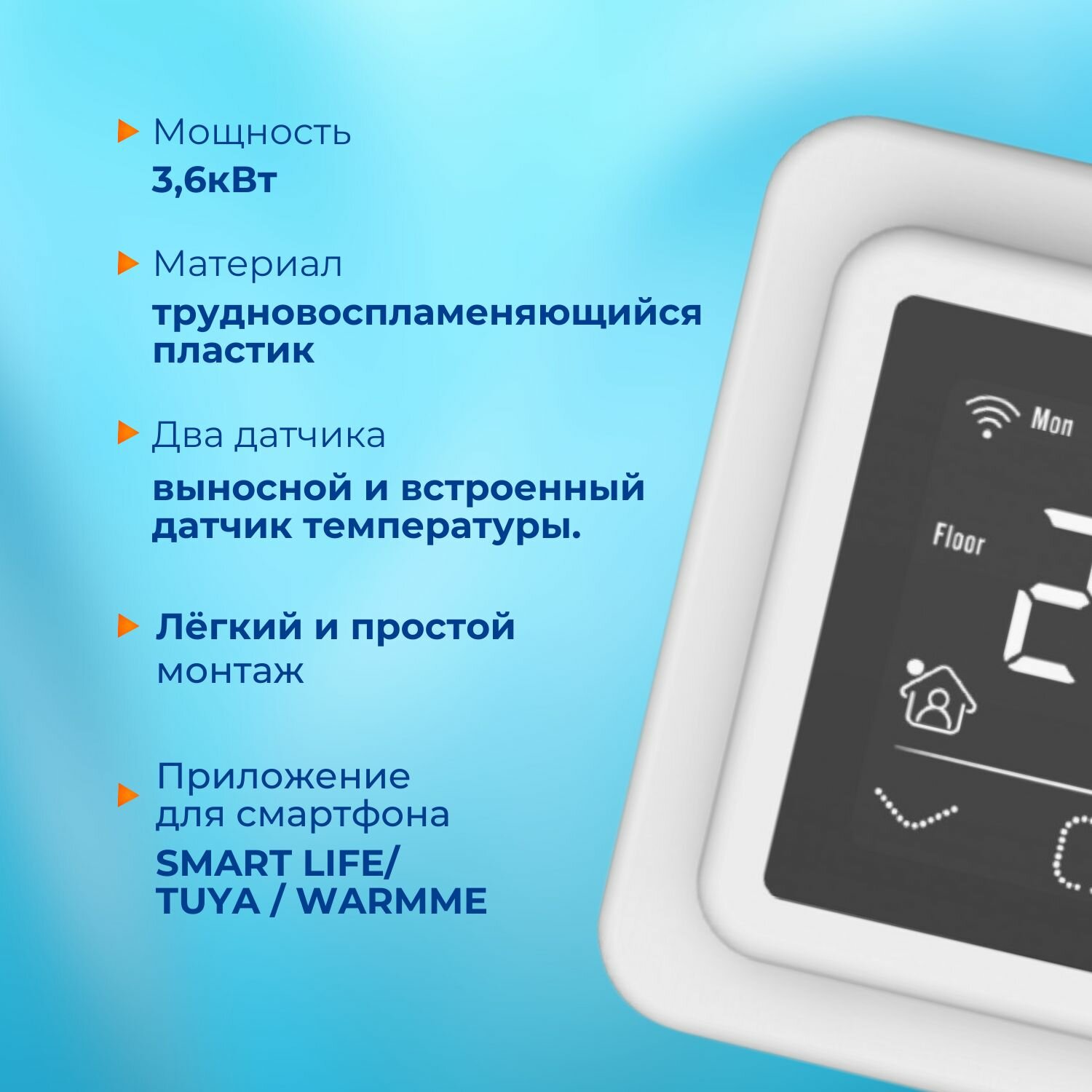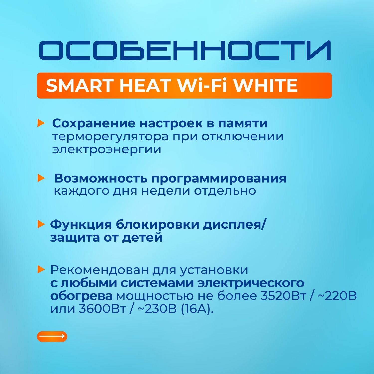 Программируемый терморегулятор с возможностью управления через смартфон SMART HEAT Wi-Fi WHITE (белый)