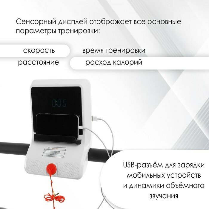 Беговая дорожка ONLITOP "MINI3", электрическая, размер в рабочем состоянии 150 х 74 х 124 см, амортизация, сенсорный дисплей, скорость до 12 км/ч, цвет белый, черный