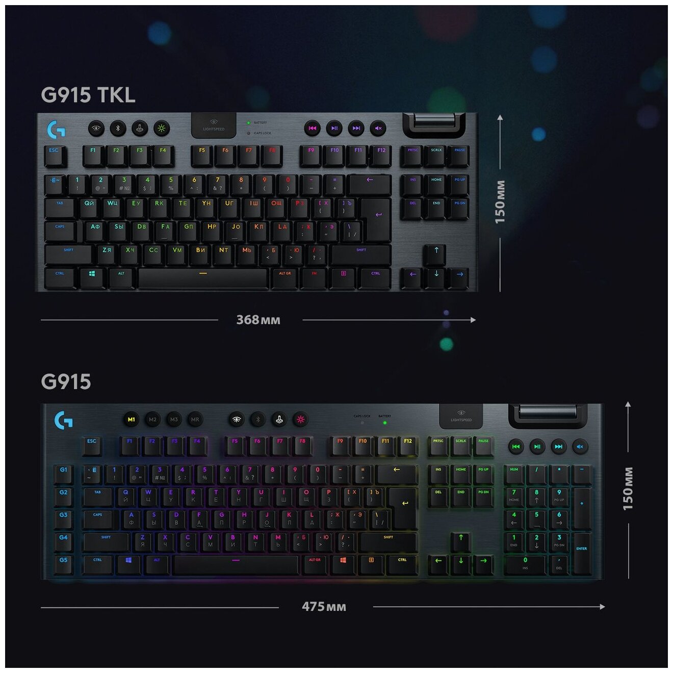 Клавиатура игровая Logitech G915 TKL CARBON (механическая, без цифрового блока, с RGB-подсветкой и поддержкой технологии Lightspeed), 2.4GHZ/BT (арт. 920-009503 с гравировкой кириллицей, M/N: Y-R0076 / C-U0018)