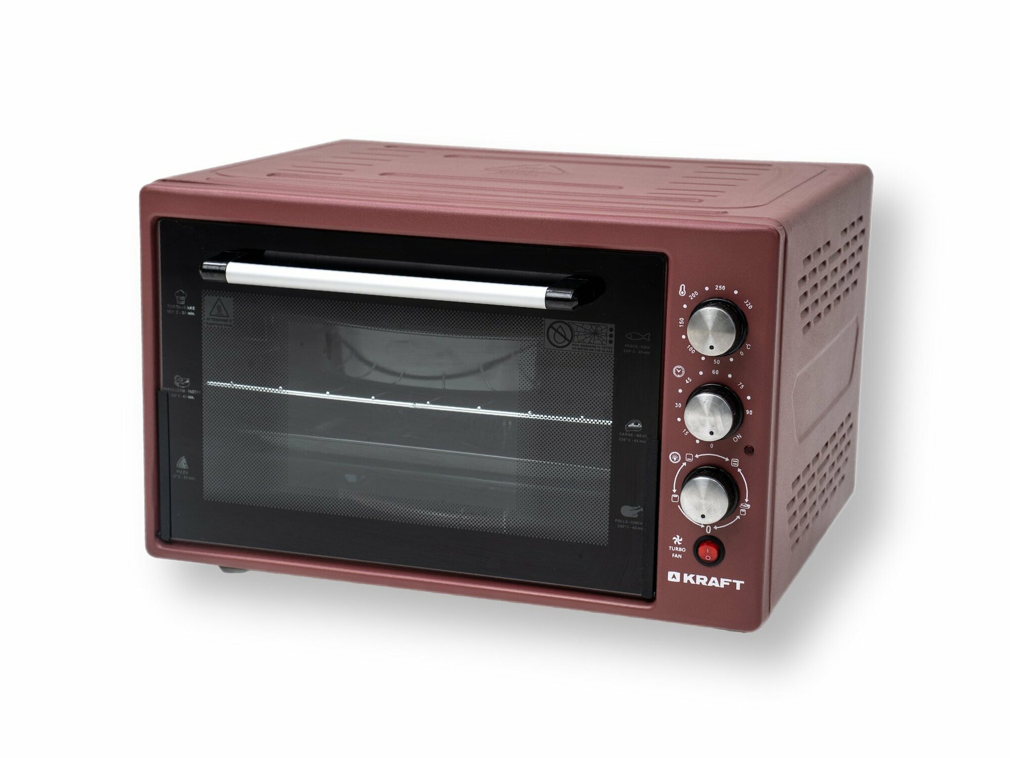 Электрическая духовка Kraft KF-MO 3800 R (38 л, 1500 Вт, мех. управление, макс. t 320˚С) красный