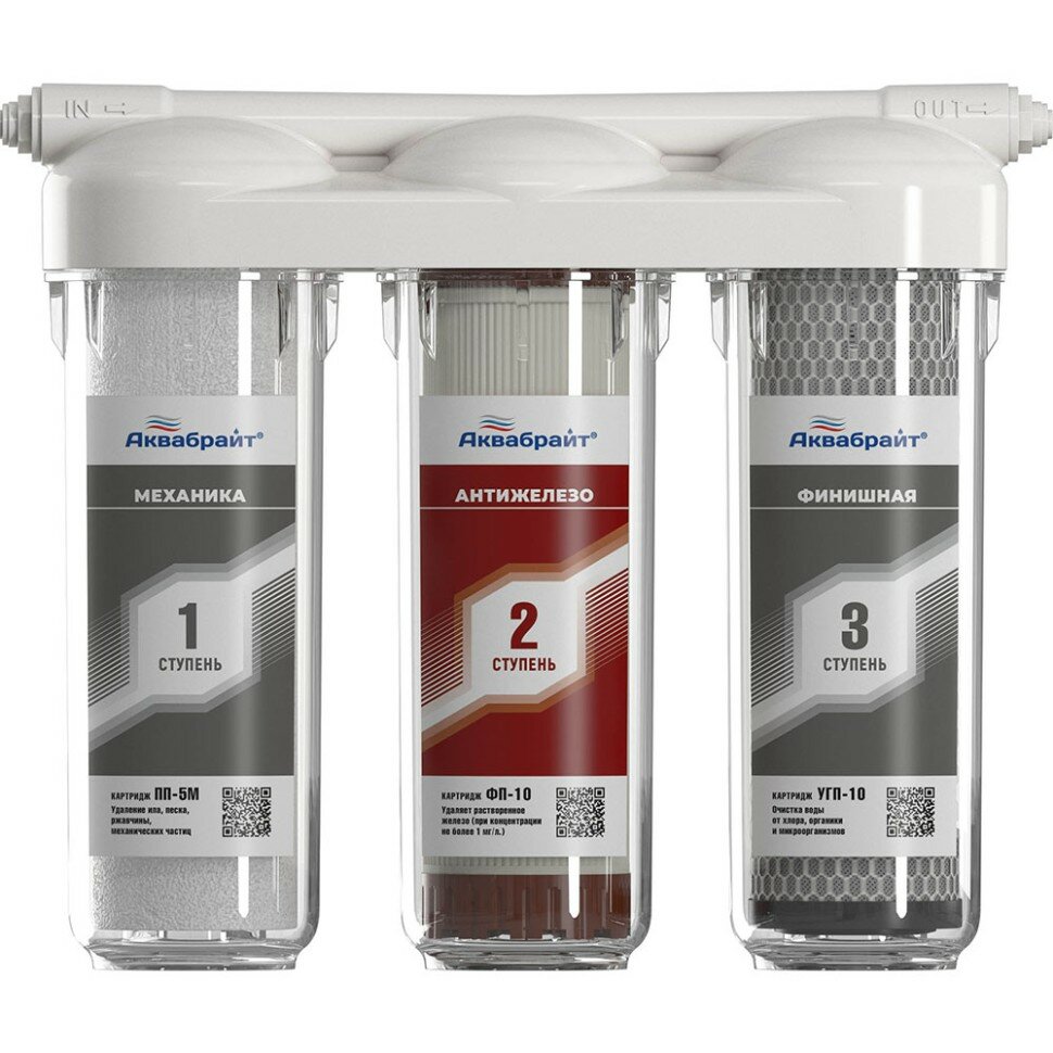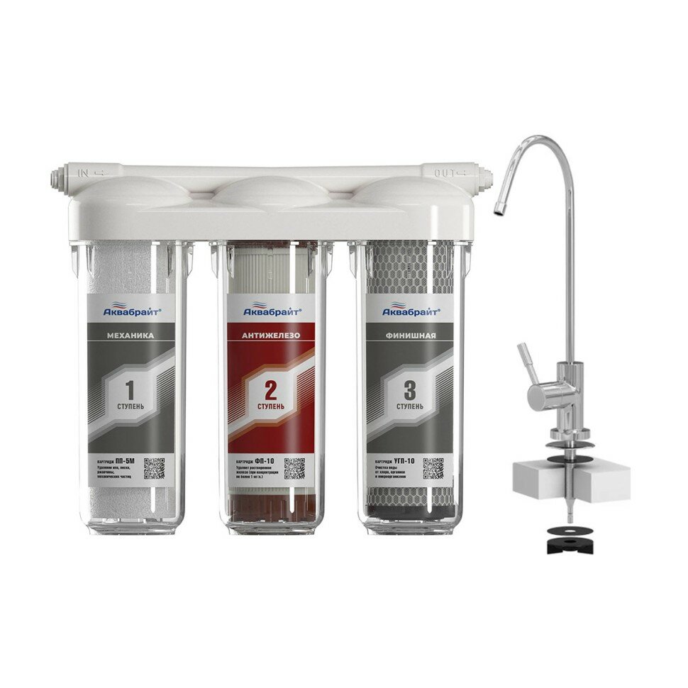 Трехступенчатая система очистки воды под мойку с отдельным краном. Аквабрайт абф- триа Антижелезо