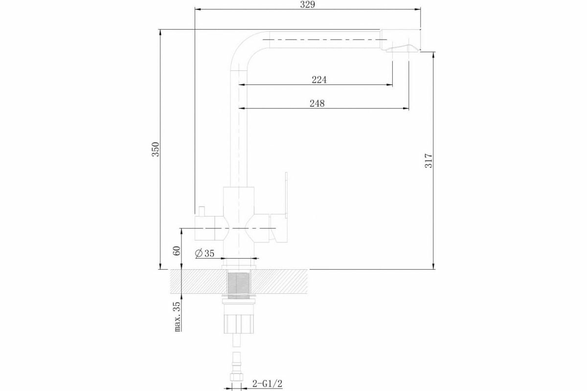 | Излив | длина 248 мм, высота 317 мм |