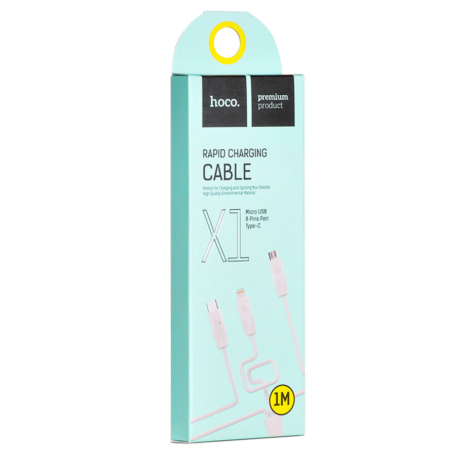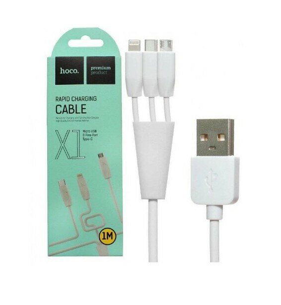 Кабель USB Hoco X1 Rapid 3в1 Lightning/ Micro USB/ Type-C, 1м, белый