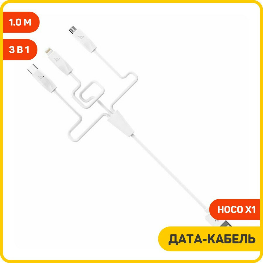 Дата-кабель Hoco X1 (3 в 1) USB-MicroUSB/Lightning/Type-C (2.1 А) 1 м, белый