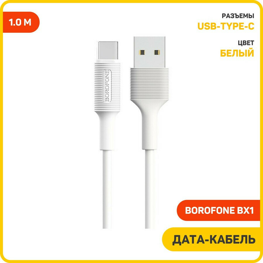 Кабель USB BOROFONE BX1 для Type-C, быстрая зарядка (fast charge), 3.0А, длина 1 м, белый, 6957531081685
