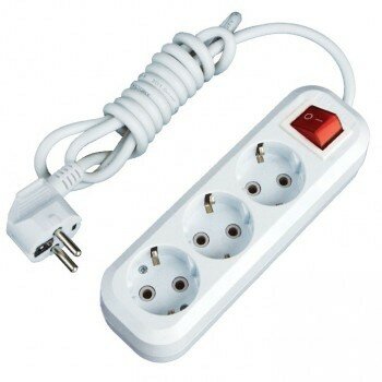 Удлинитель бытовой с выключателем и заземлением, 3 розетки, 2 метра, Эксперт (16А-3,5кВт, ПВС)
