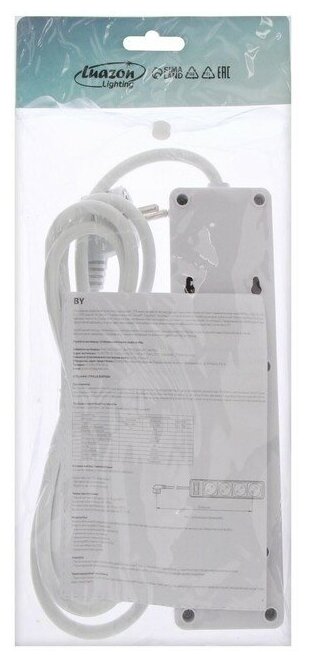 Luazon Lighting Удлинитель Luazon Lighting, 3 розетки, 2 м, 10 А, 2200Вт, 2х0.75 мм2, 2хUSB, с выкл., Б интересное: