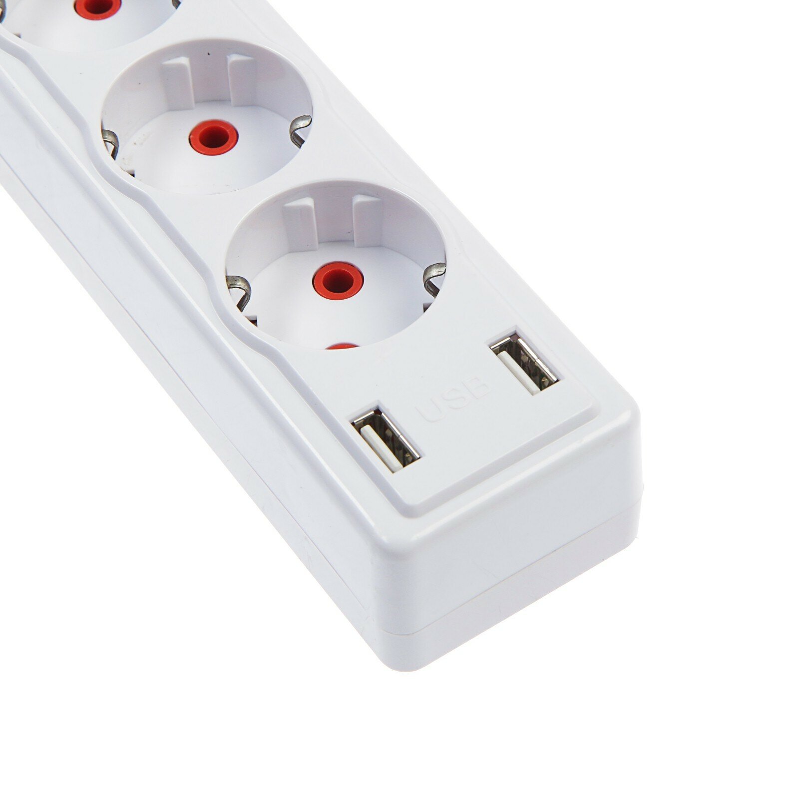 Удлинитель Luazon, трёхместный, с выключателем, 2 м, 2200 Вт, 2 х USB, 220 В, белый