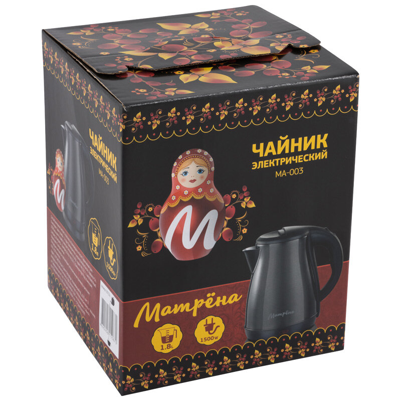 Купить Чайник матрёна MA-003 электрический (1,8 л) стальной черный