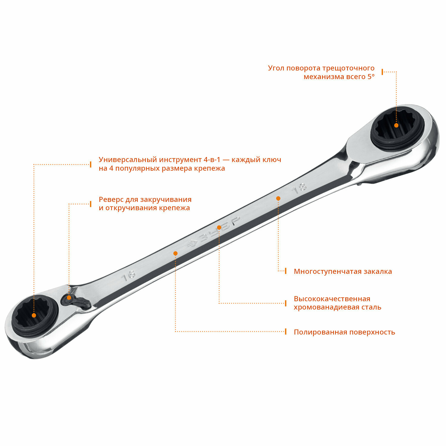 ЗУБР Набор накидных гаечных ключей трещоточных ., 8 - 19 мм, ЗУБР