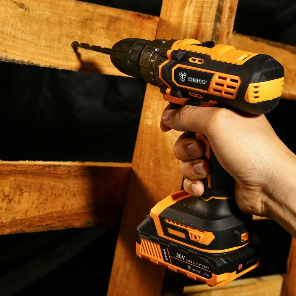 Аккумуляторная дрель-шуруповерт Deko GCD20DU3 в коробке, 1*2 А·ч, черно-желтый интересное: