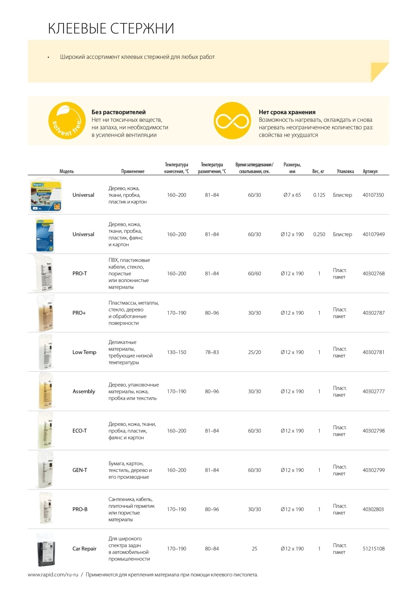 RAPID 12 х 190 мм, универсальный клеевой стержень (40107949)
