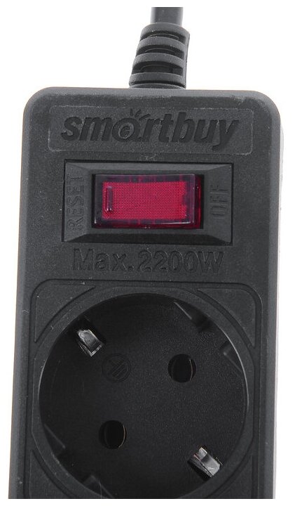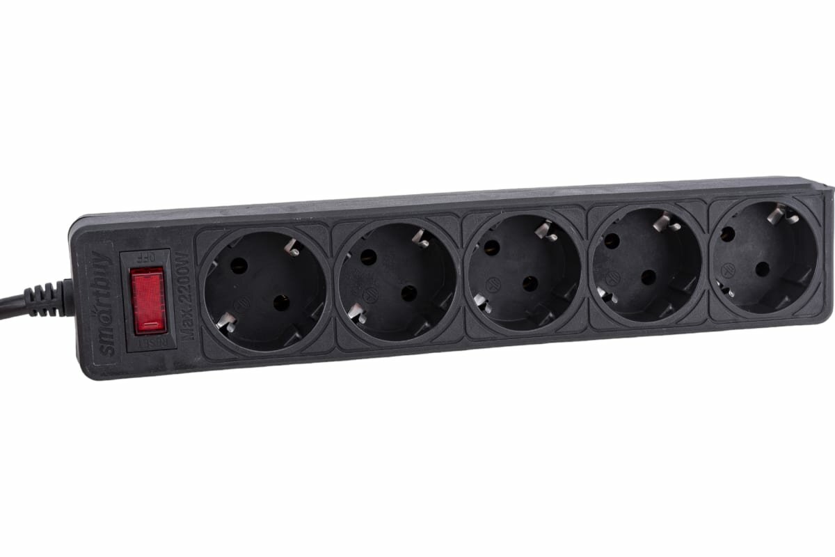 Сетевой фильтр Smartbuy, 10А, 2200 Вт, 5 гнезд, без з/ш, земля, ПВС 3x0,75, 5 м., черный