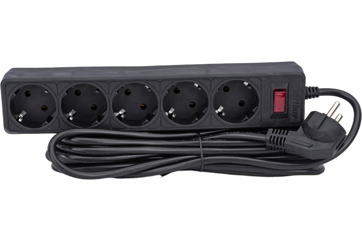 Купить Smartbuy Сетевой фильтр Smartbuy One, 5 розеток, 5 м, 10 А, 2200 Вт, с з/к, черный