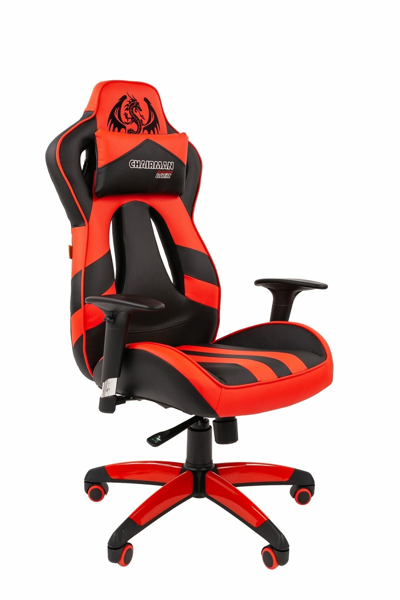 Игровое компьютерное кресло с регулируемыми подлокотниками CHAIRMAN GAME 25, экокожа, черный/красный