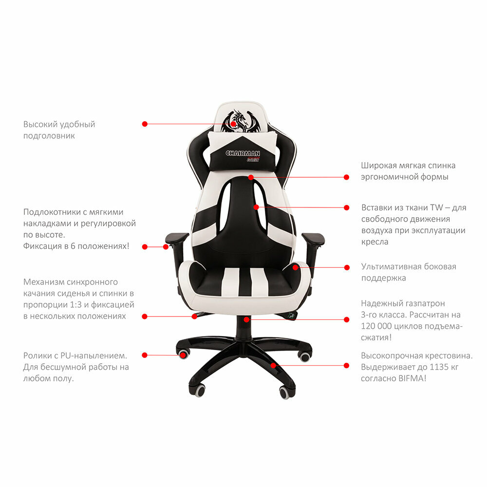 СохранитьКресло геймерское CHAIRMAN game 25 Россия экопремиум черный/белый интересное:
