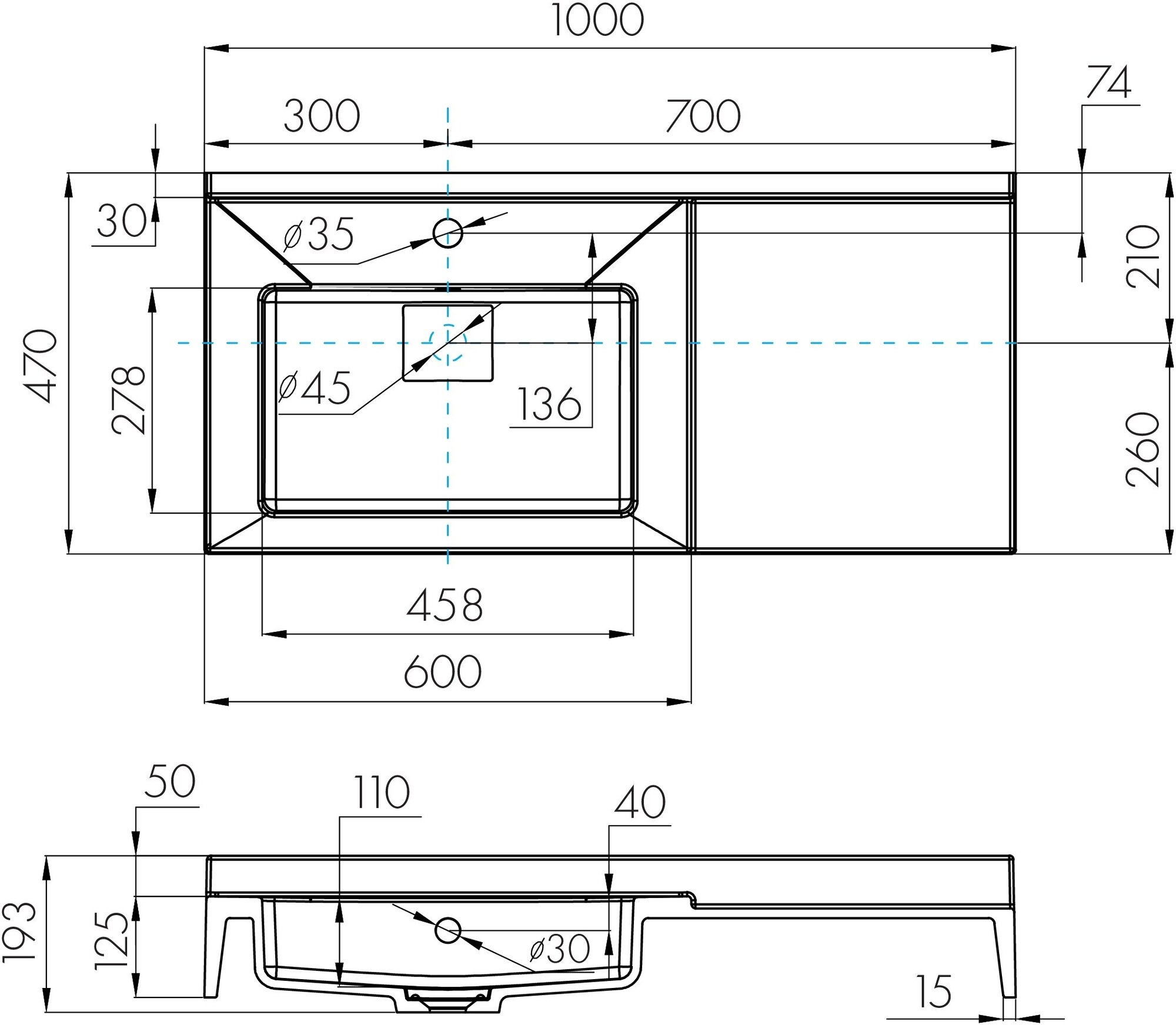 | Число размеченных отверстий под смеситель | отсутствуют |