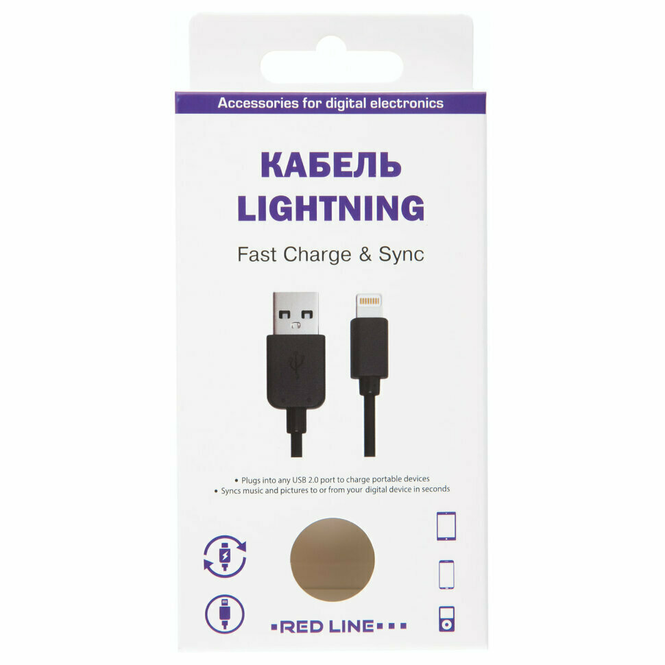 Кабель Red Line usb 2. 0-apple lightning, 1 м для подключения iphone ipad, черный (УТ000008646)