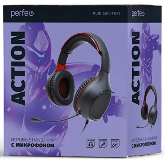 Компьютерная гарнитура Perfeo ACTION (PF-A4477), черный/красный