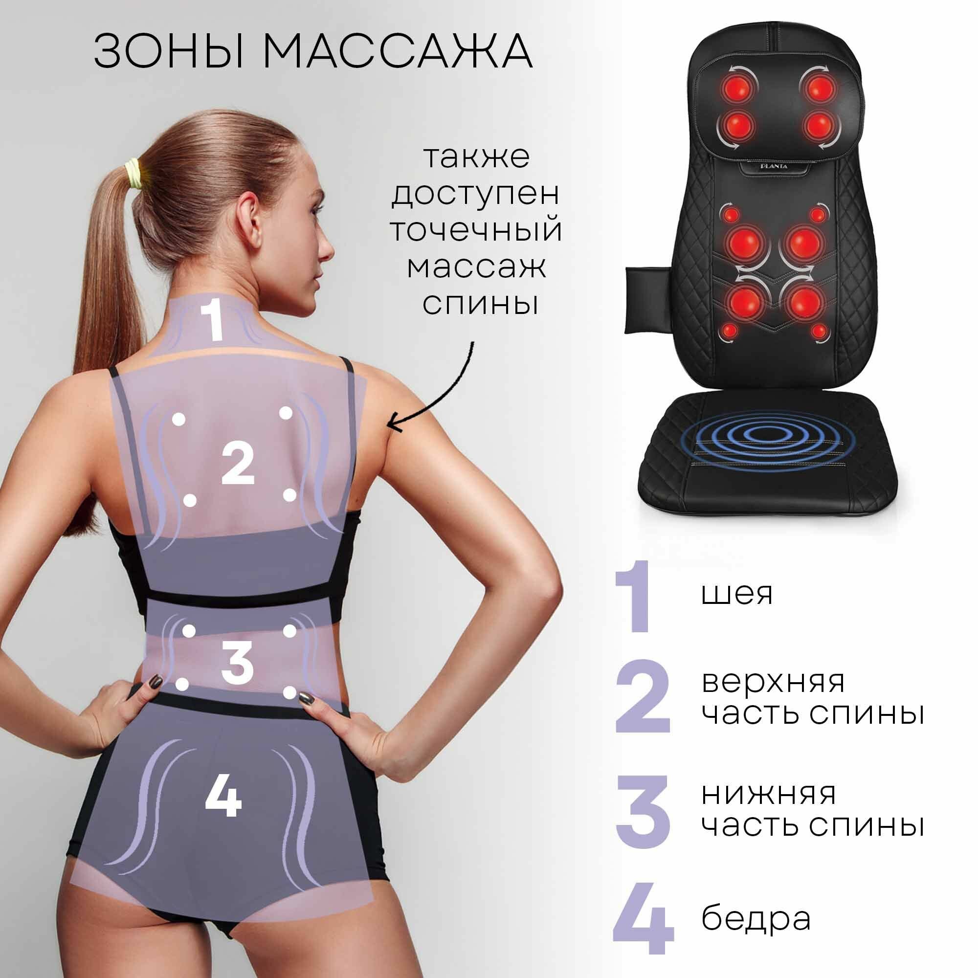 Массажная накидка шиацу PLANTA MN-1000 тонкая 3D, массажер для спины, шеи и плеч, вибромассаж, подогрев, автоадаптер