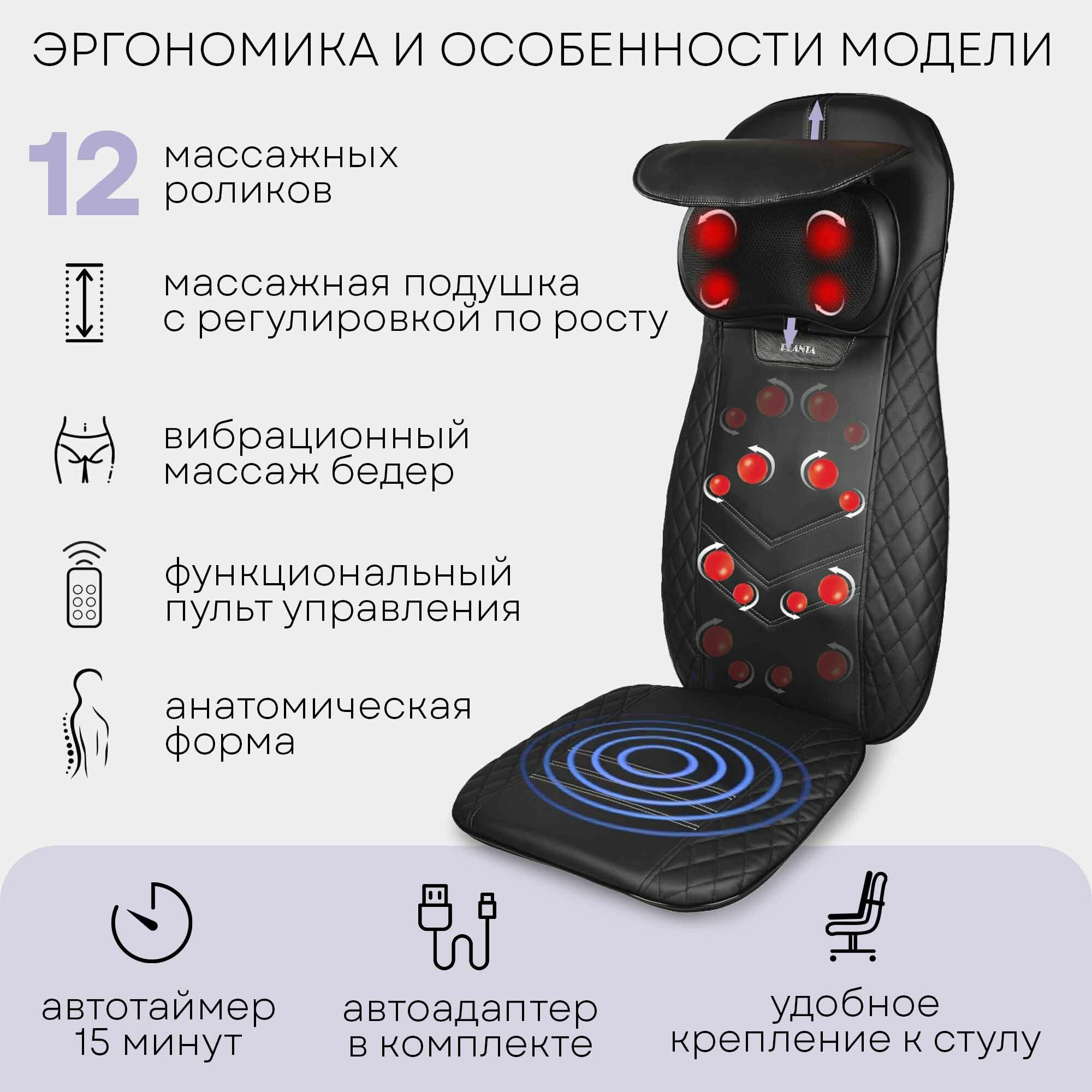 Массажная накидка Шиацу 3D тонкая Planta MN-1000 для спины, бедер, шеи и плеч; 5 видов массажа, автоотключение, пульт ДУ, автоадаптер, вибромассаж с подогревом