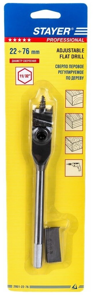 STAYER Сверло перовое по дереву, регулируемое, STAYER Professional 2951-22-76, d=22-76мм, ( 2951-22-76 )
