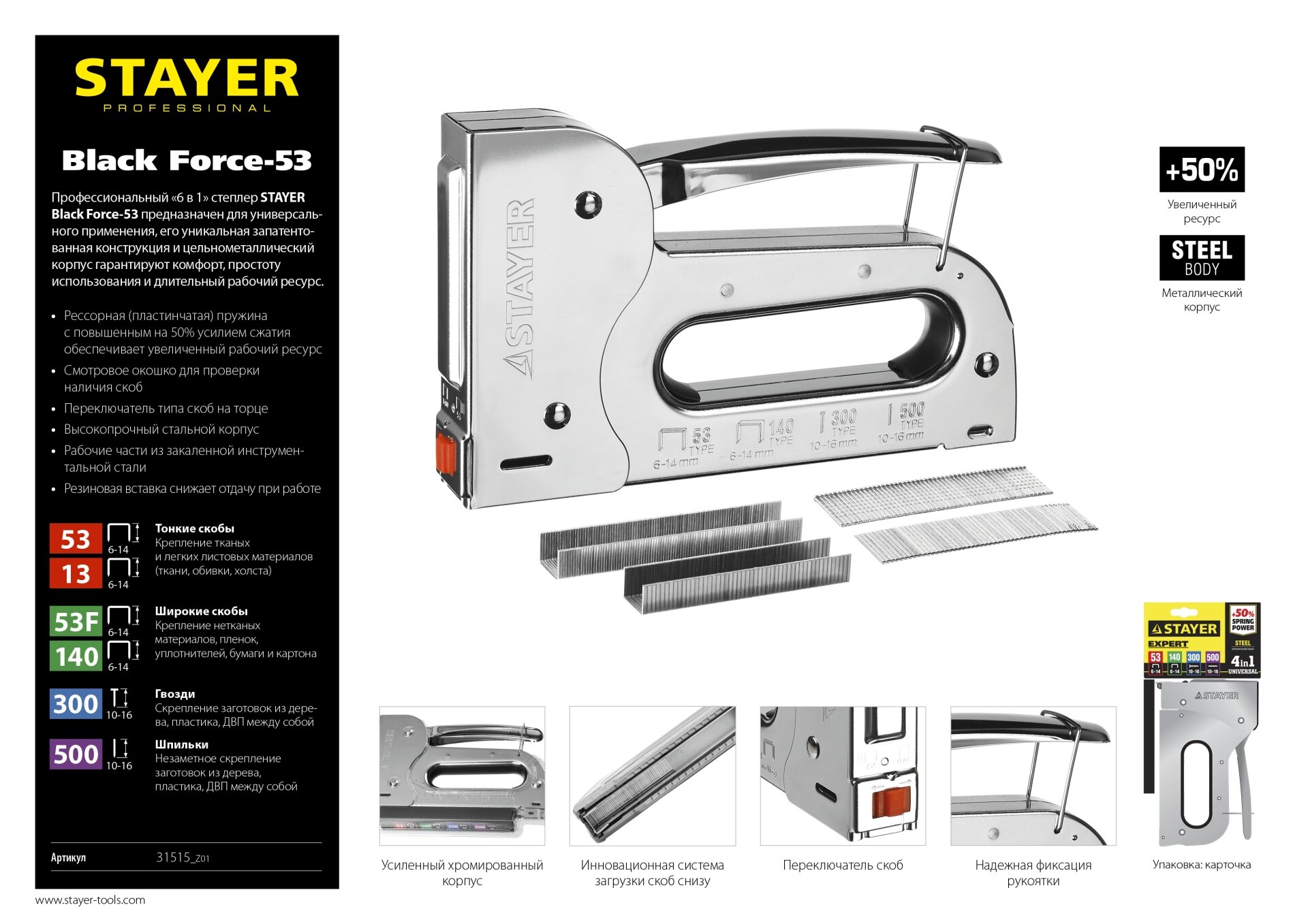 Стальной степлер Stayer BlackForce-53 тип 53, 140, 300, 500 31515_z01 .