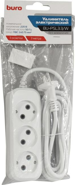 Сетевой удлинитель BURO BU-PSL3.3/W 3м (3 розетки) белый (пакет ПЭ)