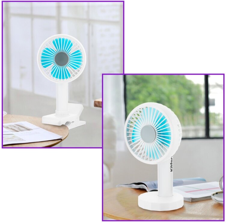| Плюсы: | Качественный пластик, красивый внешний вид, возможность закрепить на подставку или прищепку. Компактный - в жаркую погоду легко взять с собой в сумке. Дует отлично, хватает на долго, можно включить в зарядку/ноут и будет работать бесконечно. |