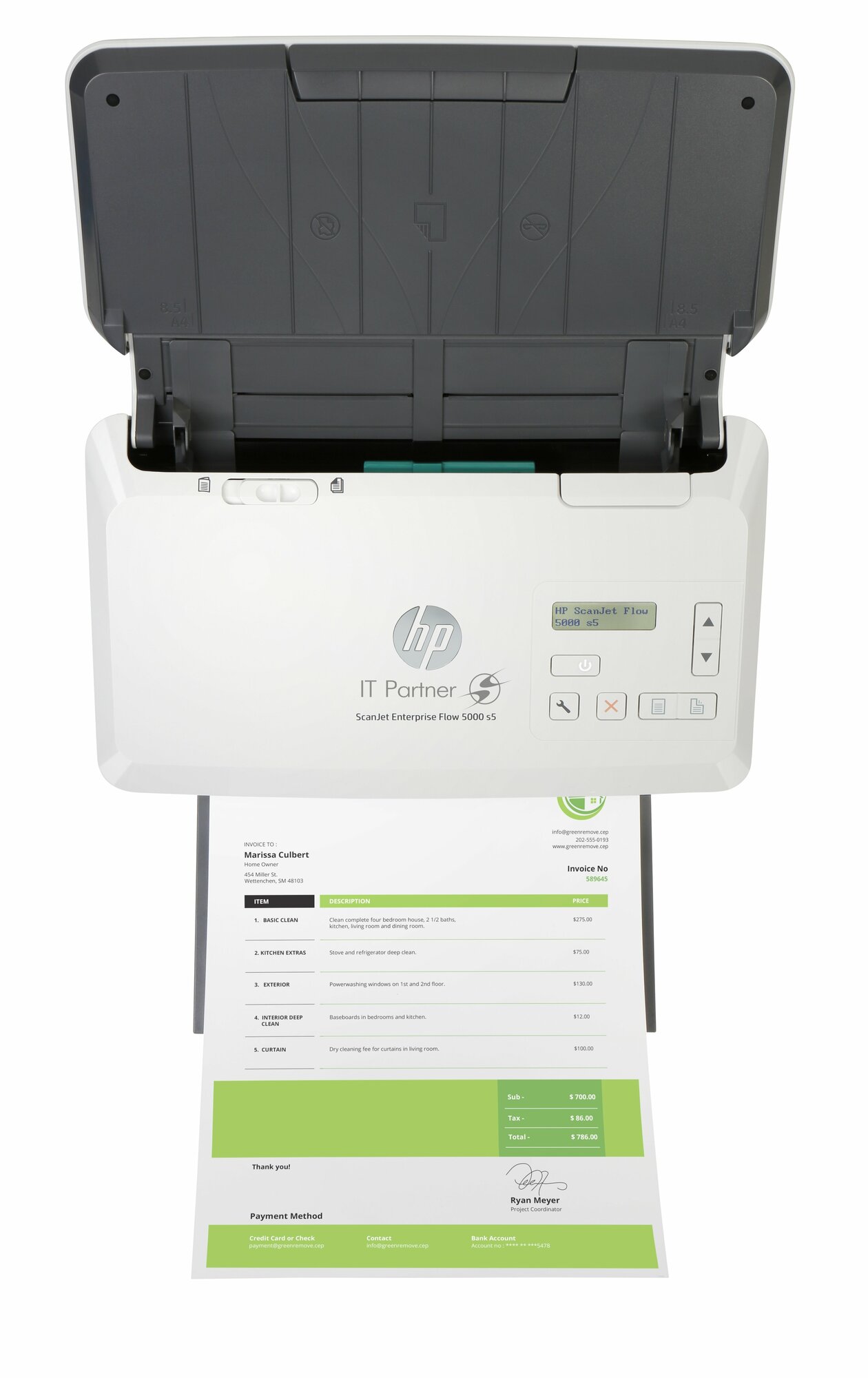 HP ScanJet Enterprise Flow 5000 s5 (CIS, A4, 600 dpi, USB 3.0, ADF 80 sheets, Duplex, 65 ppm/130 ipm, (replace L2755A))