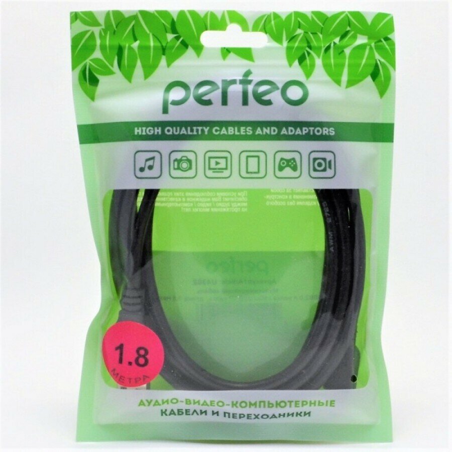 Кабель PERFEO U4401 USB2.0 A вилка-А вилка, 1,8м, черный