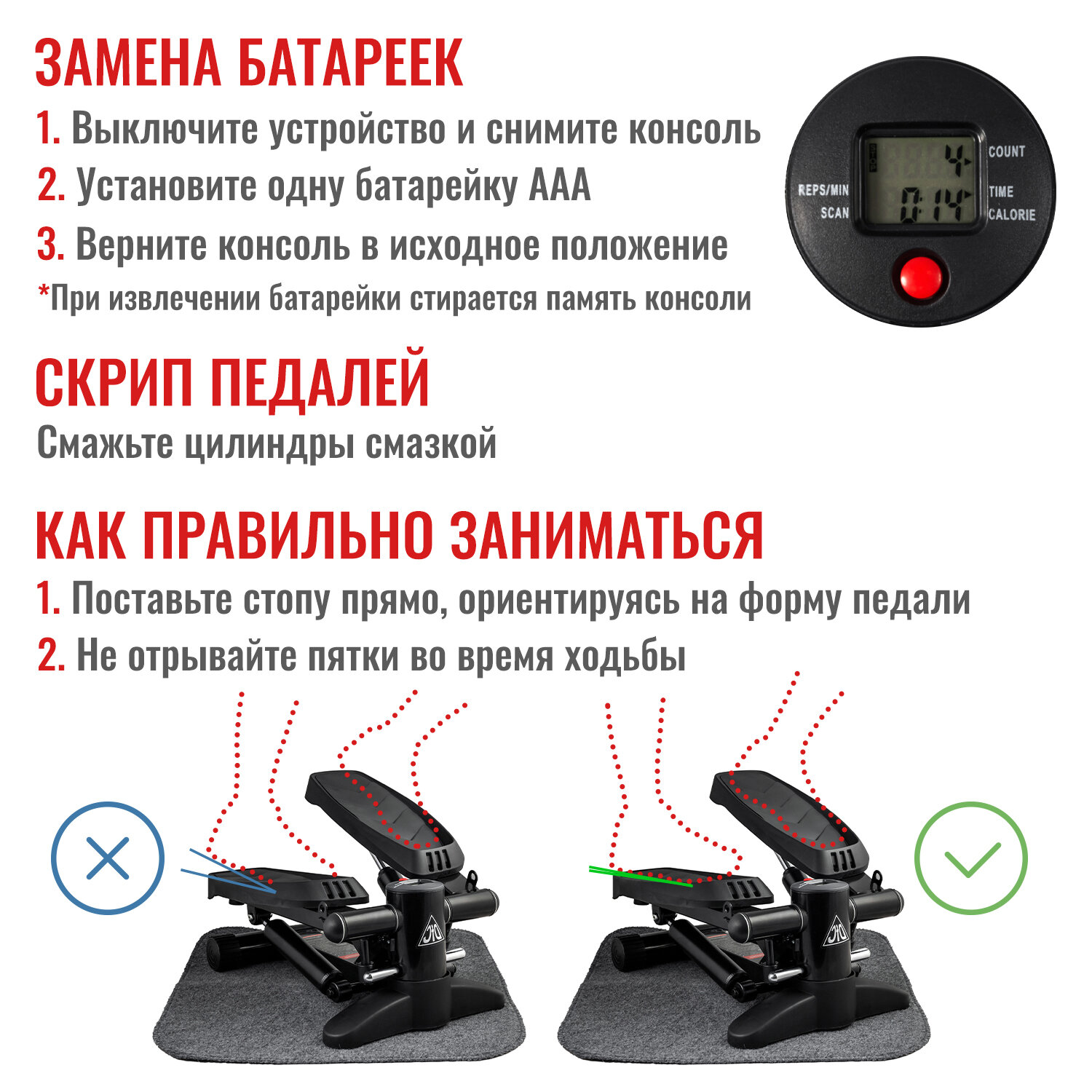 | Минусы: | Маленькая амплитуда, нет регулировки, стелька на ступеньке уже отклеивается, скрипит на первом применении |
