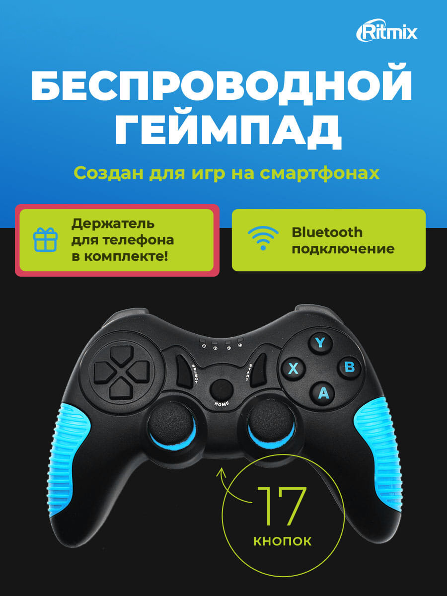Игровой манипулятор, беспроводной Bluetooth Ritmix Gp-033bth Black Blue .