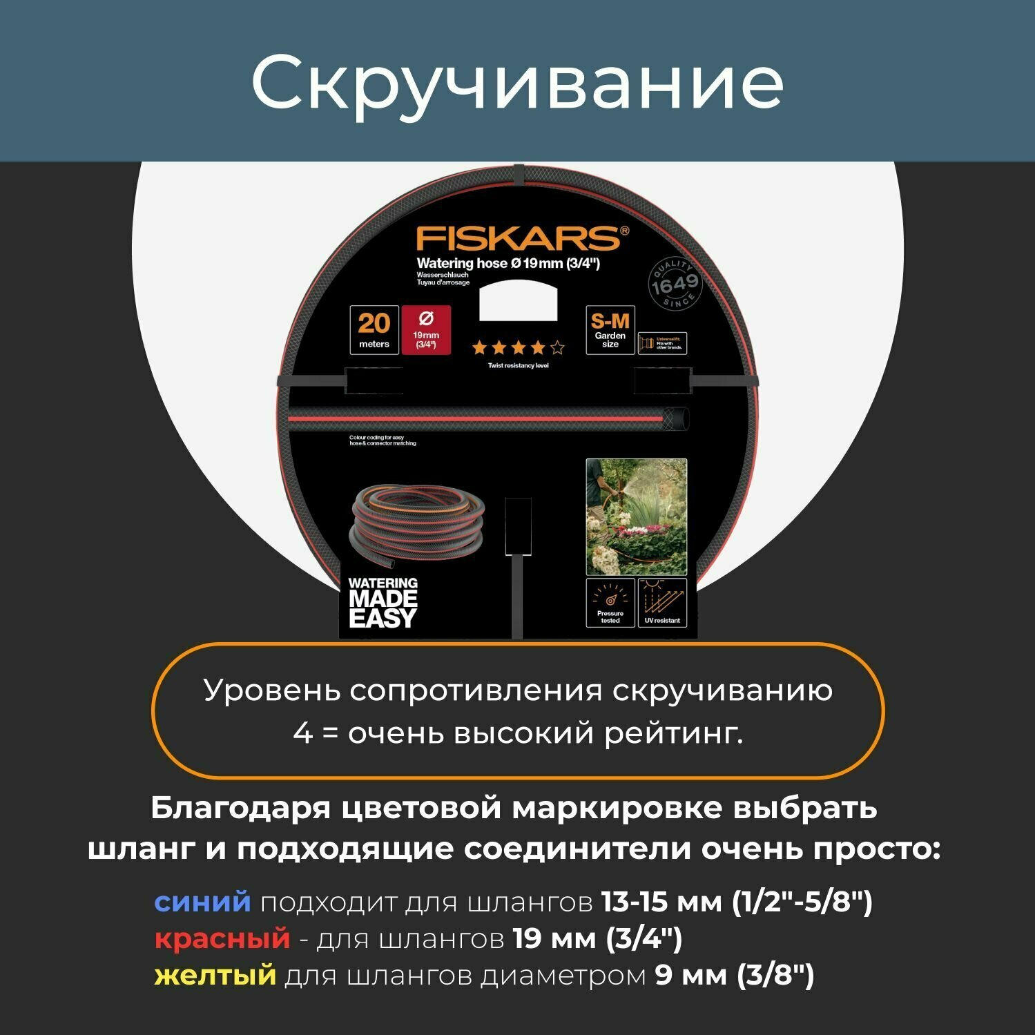 Fiskars " Шланг поливочный Q4 3/ 4 20 м " 1027110 интересное:
